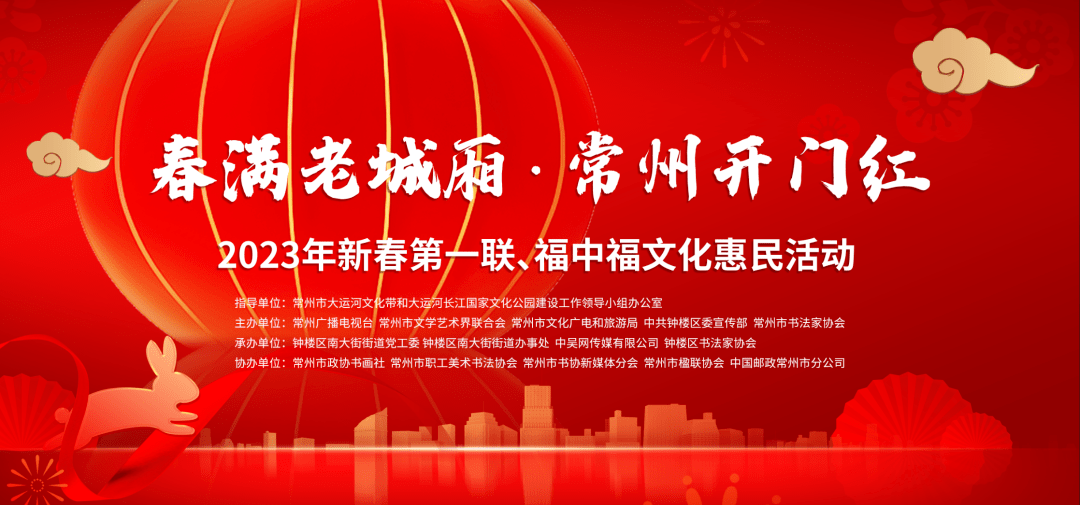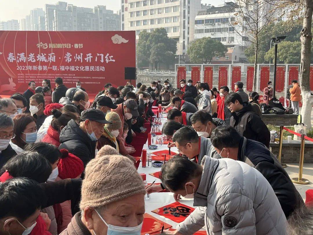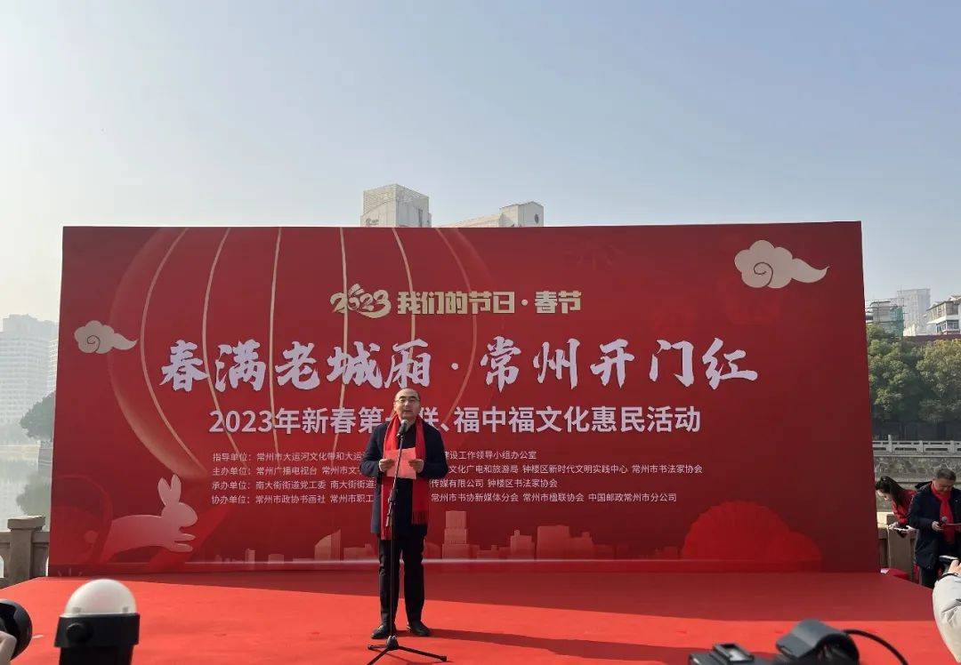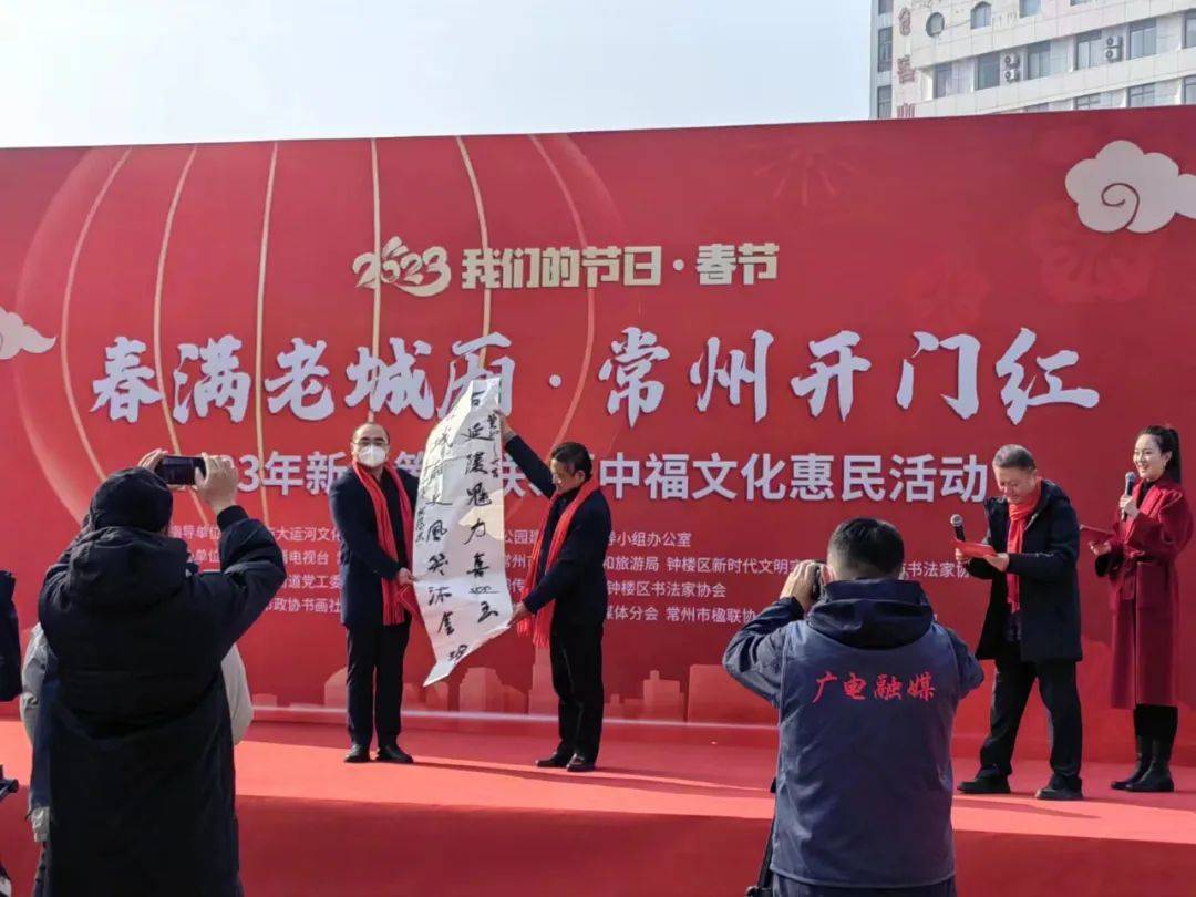 1月7日上午,由常州市大运河文化带和大运河长江国家文化公园建设工作领导小组办公室指导,常州广播电视台、常州市文联、常州市文广旅局、钟楼区委宣传部、常州市书协联合主办的“春满老城厢·常州开门红——2023年新春第一联、福中福文化惠民行动”,在常州市钟楼区南大街明城墙广场隆重举行,并首次活动现场直播。