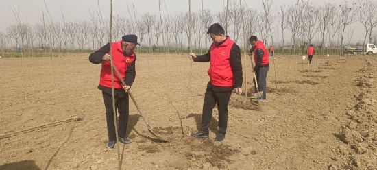 在植树活动现场,身穿红马甲的党员志愿者三两一组分工明确,通力合作,有条不紊地完成挖坑、栽树、浇水、培土等各项工作。通过一上午的辛勤劳作,共同种下杨树苗、大马士革玫瑰1000余株,以实际行动为社区增添了一份生机,为春天增添一抹绿意。