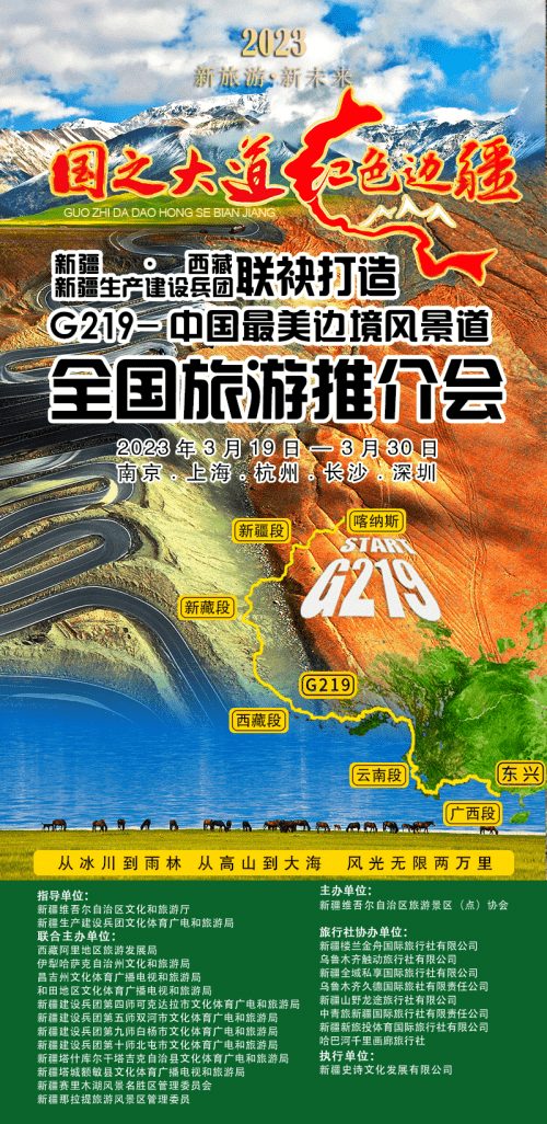 2023年3月19日-3月30日,帕米尔旅游区参加由新疆维吾尔自治区文化和旅游厅、新疆生产建设兵团文化和旅游局指导、新疆、西藏阿里地区G219沿线相关单位联合主办的第三届“国之大道∙红色边疆—G219 中国最美边境风景道”全国推介会走进南京、上海、杭州、长沙、深圳等五大地市,对重点客源城市进行旅游宣传、推介,进一步加强与重点客源城市对接交流与旅游合作。