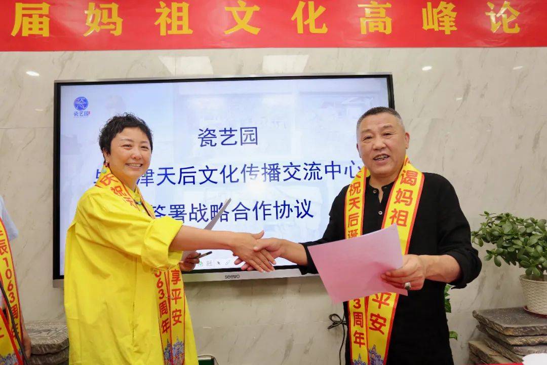 此外,为推动妈祖文化的研究与实践,优势互补,搭建起更加宽广的文旅商融合的平台,瓷艺园艺术馆与天津天后文化传播交流中心还签署了战略合作协议。(完)