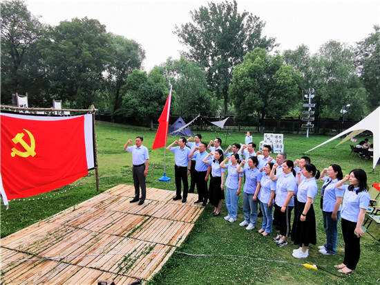6月16日,在党的102岁生日到来之际,中国电信淮安分公司市场客服渠道党支部和集成与软研中心党支部共40名党员在古淮河生态园开展“不忘入党初心 同过政治生日”和“强党性 勇担当 增活力 促发展”党建翼联主题党日活动。支部书记张洪春同志与全体党员一起学习《基层党建任务》的党课,随后为过政治生日的党员准备了一场氛围隆重而又充满特殊政治意义的“生日贺卡”和礼物,并带领党员重温入党誓词唤醒党员入党初心,让全体党员进行了一次充满仪式感的党性洗礼。
