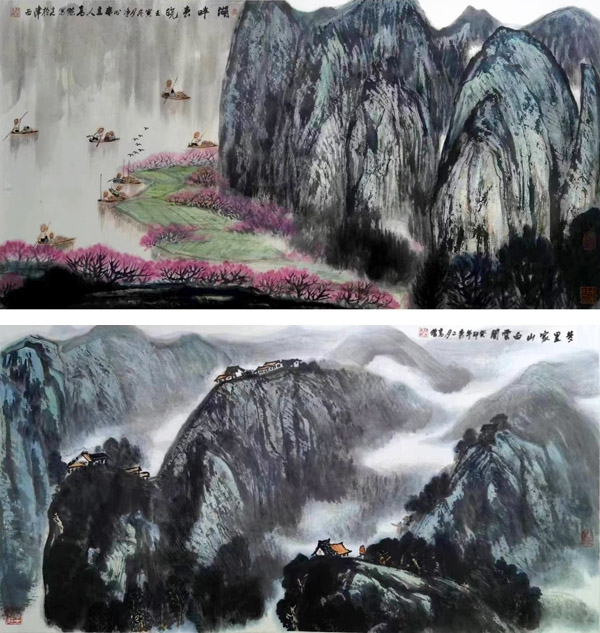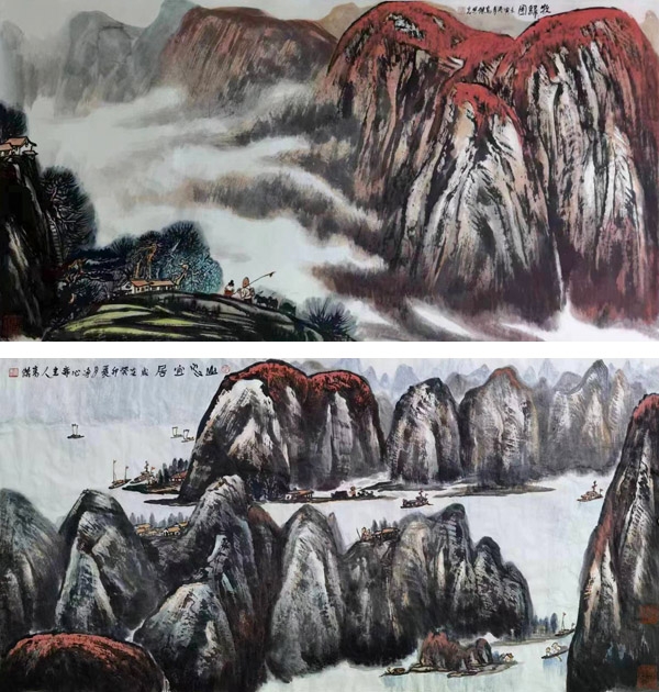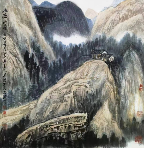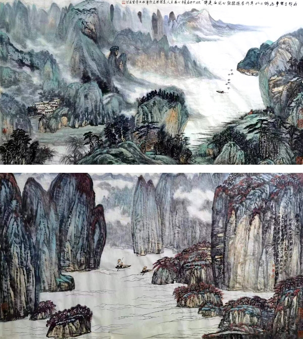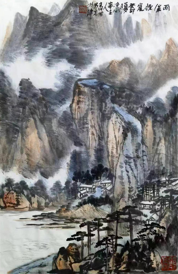 皴法多样,神韵贯通是高杰先生山水画技法的突出特色。中国山水画有着两千多年的文化传承,画山水讲究皴法,皴法不娴熟画不出大山的气势和神韵。高杰先生在文化上继承了先人优秀传统的基因,凭着自己的勤奋和悟性,闯出了自己绘画技法的新天地。