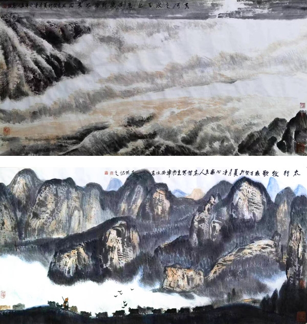 画家在传移摹写现实形象中,一定要给与所摹形象以某种意义,要将自己的感情即对某种物象而产生的感情直接从所摹形象中表达出来,高杰先生正是用一种对祖国河山的挚爱情感和满腔豪情加之对山水画本体的深刻理解和全面修养,才使得自己笔下的山川,风骨凛然,雄伟俊逸,一波三折,力透纸背,流畅如行云,凝重如古藤盘曲,轻松如闲庭信步,自由如鱼得水。《太行颂》、《悟道图》等作品,或俊秀、或苍茫、或飘逸、或浑然,但都画出了大山的气势,大山的神采,大山的灵魂。达到了抒发心胸,出神入化,气韵生动,一片神行的艺术境界。
