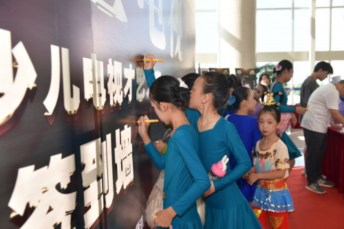 各位小演员们在签到墙上留下自己的名字并合影留念