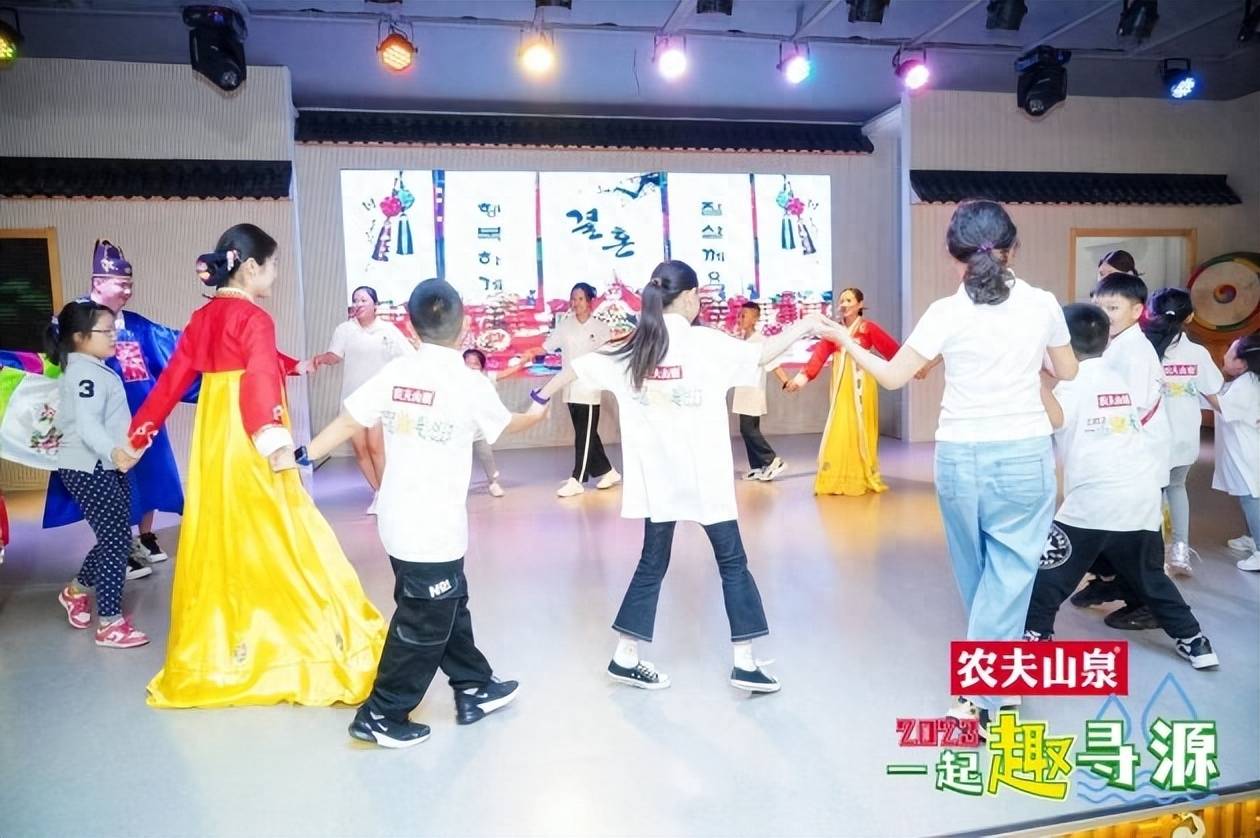 水源生生不息,孕育了一代又一代人。在朝鲜族古村落百花谷,穿戴朝鲜族民族服饰,体验朝鲜族和满族的文化韵味。亲子互动,用农夫山泉水泡制延吉冷面、制作辣白菜和打糕等美食。在一声声欢笑声中,恰逢历史,见证了水源的绵延,文化的传承。