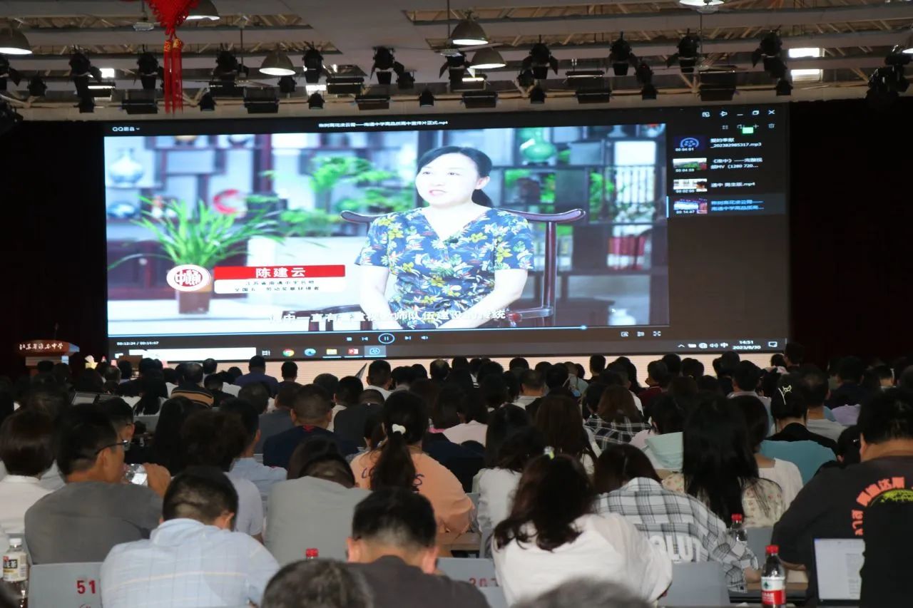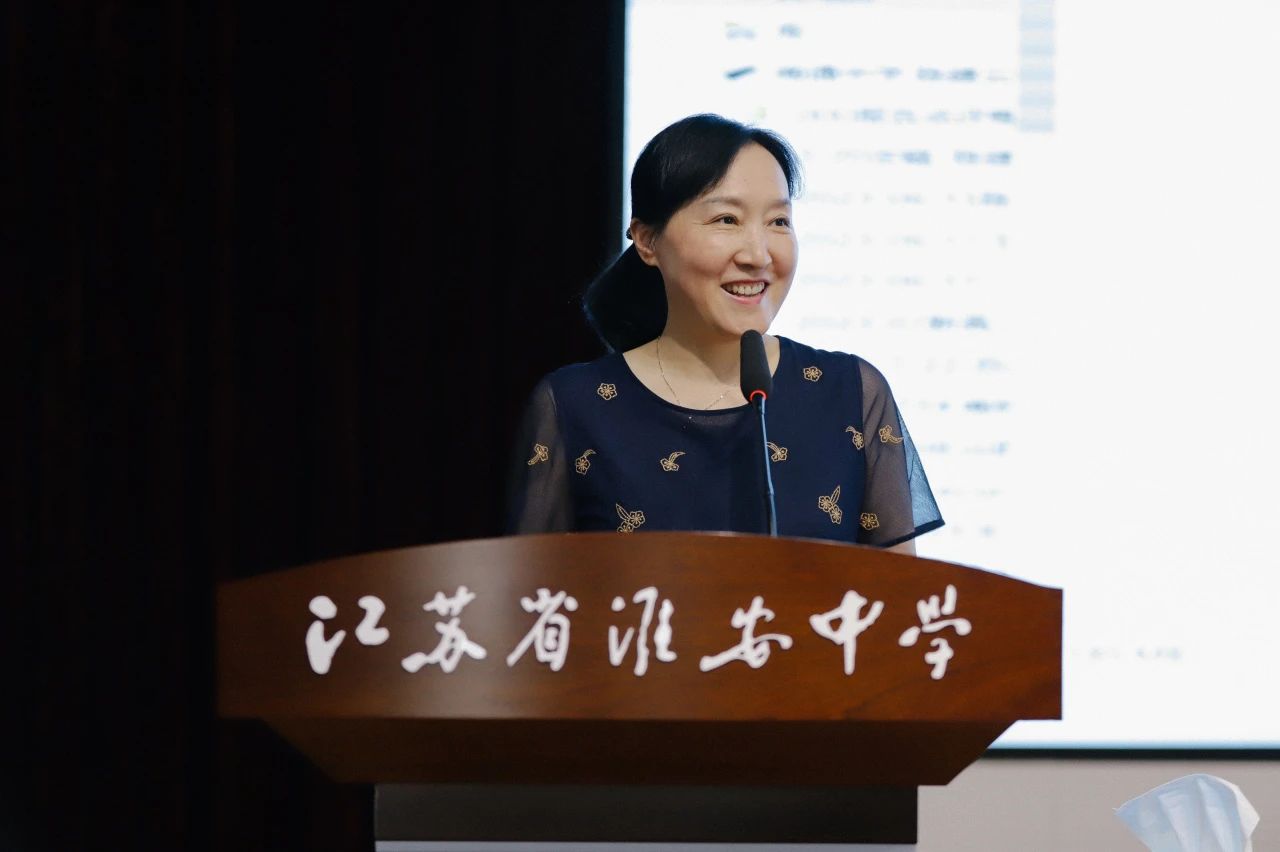 讲座开始后,陈建云校长首先介绍了江苏省南通中学的总体概况,播放了南通中学的宣传片,让大家对这所百年老校、省四星级普通高中,有了更进一步的了解。接着,陈建云校长以“让生命成长有声,为人才培养赋能——‘三新’背景下学校的教学改革与教学研究”为主题作了讲座。她从学科组和备课组建设、教研组和备课组工作基本规范、“学导式智慧”课堂助学生成长、高三全力以赴冲刺、价值引领、课程研发、课堂改革、业务领航、课题研究等方面作了分享。