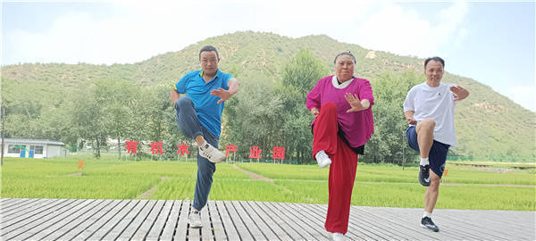 子母绵掌弟子 巨龙(左)子母绵掌代表性传承人、第四代传承人刘忠云(中)宣静清(右)