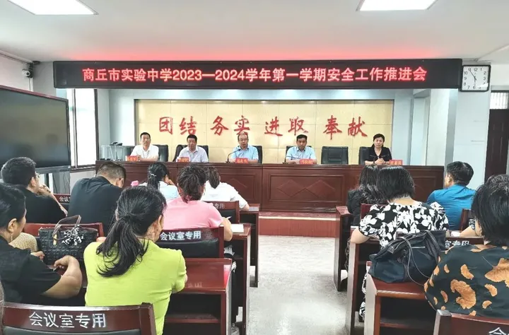 为进一步提高安全防范意识,压实校园安全责任,深入推进学校安全工作。9月1日下午,商丘市实验中学(商丘师院附中)初中部召开安全工作推进会。校长刘庆华出席会议并讲话,副校长马良轩、李建民,校务委员郭彦军、黄素英及全体中层干部、政教处、安保处、年级组值班人员参加会议。