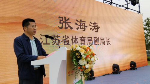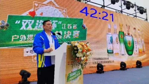 江苏省体育局副局长张海涛出席颁奖仪式并讲话,宣布“双沟”杯江苏省第四届网络全民健身运动会掼蛋大赛颁奖典礼圆满结束