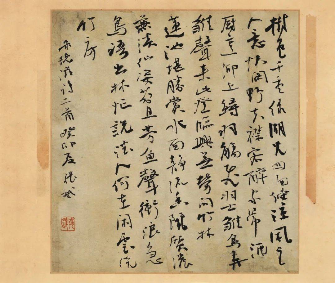 释文:翰流恩泽远,墨迹半依微。燕子知承宠,年年傍栋飞。君恩付流水,无复吊仙姬。有客捞明月,香魂应借辞。溪桥郁古木,渔歌托风达。欸乃三四声,顿与浮名割。醉客竞诗鞭,碧流净文几。荒草伴斜阳,风光非昔比。狂风打船头,路熟人不熟。关空欲黄昏,何处觅汤粥 ?野存未改井,何如去朝觅 ?若逐景阳风,一瓣复一瓣。衰草迷古迹,夕阳翻骨董。惟有石上苔,青青补字孔。野柝杂蛙鼓,不知谁为公。熙朝弛夜禁,遮莫戍楼空。