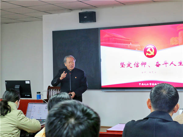 11月30日下午,应九江市委组织部邀请,九江市委党校客座教授、井冈山干部教育学院红色文化特聘教授、九江市关工委老同志报告团成员、九江市职工文体协会传承红色基因分会会长、九江市书画家协会党支部书记梅楚安来到九江市委党校,为全市“两新”组织入党积极分子讲授党课《坚定信仰,奋斗人生》,为大家讲述中国共产党信仰和奋斗历程,从四个方面予以展述。