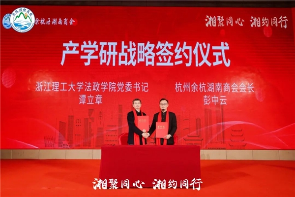 同期举行了“美业大健康专委会”揭牌仪式和商会与浙江理工大学法政学院产学研签约仪式, 湘潭市工商联授牌商会湘潭市驻杭招商联络处仪式等多项活动。