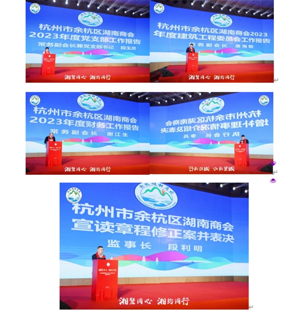 当天下午召开了余杭湖南商会二届二次会员代表大会;二届三次理事会;二届四次常务理事会。商会会长彭中云用“六颗心”从六个方面回顾总结了2023年度的工作情况和成果并从六个方面对2024年的工作进行计划展望。一、“不忘初心”高性价比会员服务;二、“公益心”社会责任;三、“一条心”创意有文化的品牌商会;四、“责任心”夯实桥梁纽带作用;五、“强信心”共享资源共谋发展;六“向党红心”加强党建工作。