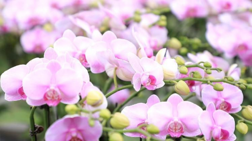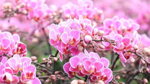 走进占地260余亩的花卉基地的温室大棚内,色彩缤纷的蝴蝶兰株苗被整齐地摆放在苗床上,让人目不暇接。花农正忙着为各色的蝴蝶兰配盆、上盆、修枝、造型,装盆,再到装车发货,一片忙碌景象。