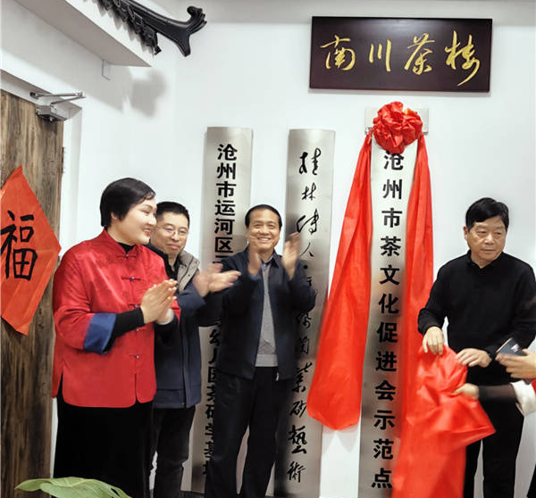 随着全场的欢呼声和雷鸣般的掌声,红色的绸缎慢慢的落下,沧州市茶文化示范点,银光闪闪的牌匾呈现在观众眼前。1月19日,南川楼茶楼茶文化示范点揭牌仪式圆满成功。