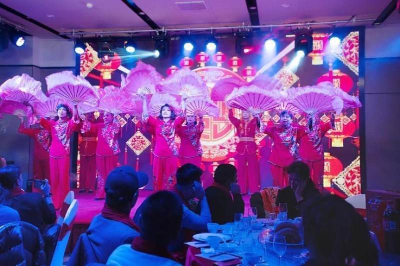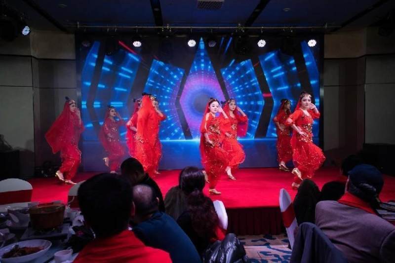本次年会上,酒店员工自创自演了丰富多彩的文艺节目,激动人心的抽奖活动更让整场晚会高潮迭起。《开门红》给大家带来了一个精彩的开头,表达了员工对酒店明天的美好祝愿,合唱《歌唱祖国》唱出了对祖国母亲的热爱,舞蹈《相亲相爱一家人》跳出了工作人员相互成就的美好氛围,舞蹈串烧 《我和我的祖国+饿狼传说》更是创新演艺了对祖国柔情和工作狼性的完美结合,独唱加伴舞 《红玫瑰+护花使者》表现出了对美好青春的一往情深,舞蹈《阿拉伯之夜》演艺着异国的风情,特邀嘉宾专业深情演唱的《西部牧歌》,专业的台风更是提升了酒店年会整体演艺标准…… 近20个节目,让家人们大饱眼福,节目过程中穿插三轮抽奖活动,将年会现场氛围推向了高潮,整场年会在激昂的氛围中结束。