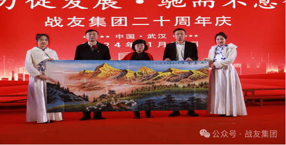 湖北省个体劳动者私营企业协会会长王勤,原火箭军指挥学院政治部副主任楚景义大校为庆典致词。著名画家王菊浓女士为战友集团赠送画作。