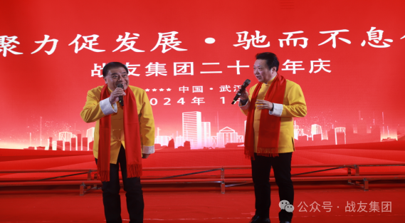 《我也来祝贺》由战友集团太平洋汽车后市场演出武汉说唱团团长陆鸣和徐勇带来的精彩相声。表演中陆鸣团长一本正经说,他的钢琴老师是董事长杨建桥,让大家一下蒙了。原来这个包袱抖下是说,杨董事长20年运筹帷幄弹钢琴,率领集团凝心聚力谋发展的艰苦历程。