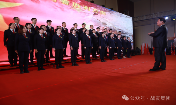 4点50分,在舞蹈《步步生莲》和邮政艺术团叹为观止的杂技表演《太空漫步》后,大家全体起立,与战友铁军建设集团一起,同唱《筑梦未来.祖国不会忘记》,唱出了激情,点燃了大家心中的火焰,庆典活动在喜庆欢快的歌声中结束。