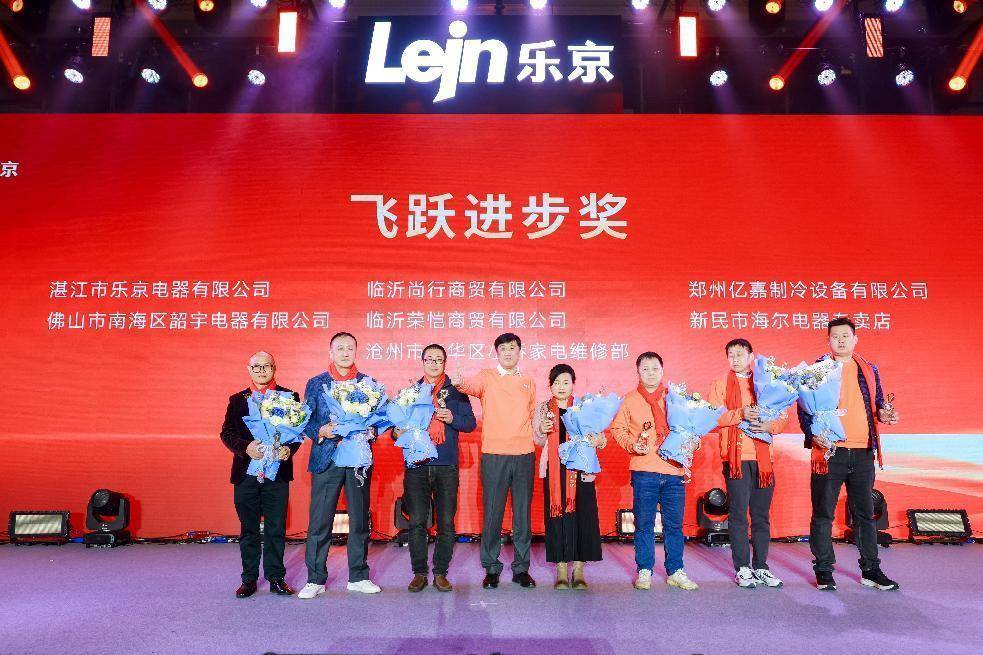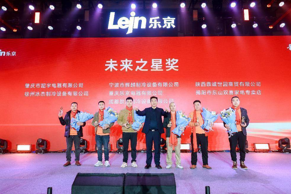 2023年,有这么一群乐京人不畏艰辛,逆势而上,共同铸就如今的辉煌。为感谢与表彰这些风雨同舟、并肩同行的杰出伙伴,乐京特设“风雨同舟奖”、“未来之星奖”、“飞跃进步奖”、“奖”多项重磅大奖。30多位代理商分批上台接受乐京事业部及美博集团领导颁发的荣誉奖杯。