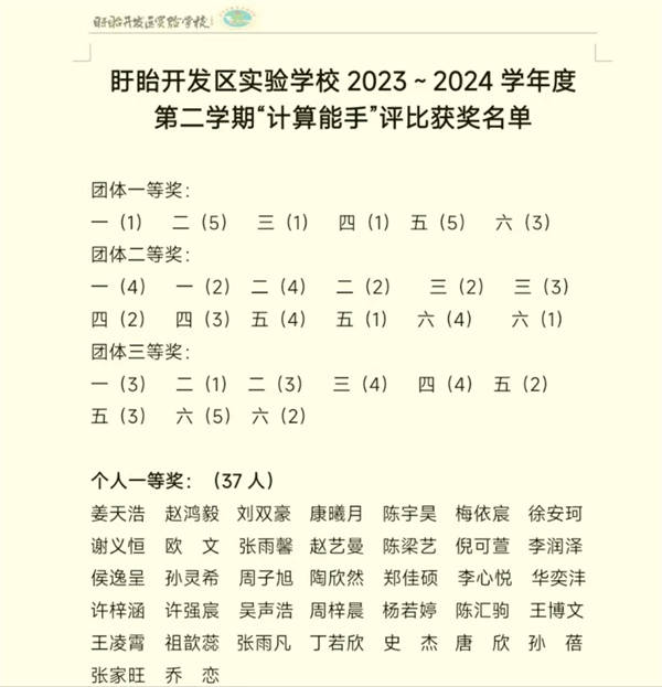 “本次活动不仅锻炼了学生的数学计算能力,还提高了他们的思维能力和团队协作能力。同时,活动也进一步激发了同学们对数学学科的兴趣和热情,为校园数学文化氛围的营造奠定了坚实基础。″盱眙开发区实验学校教务处主任杜荣成欣喜地说。