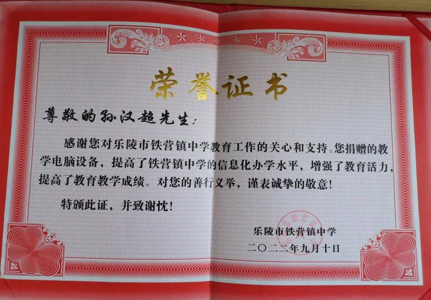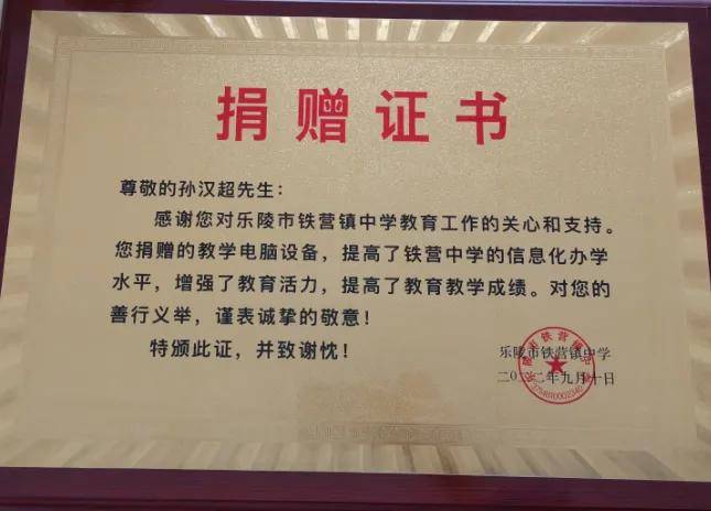 饮水思源,不忘桑梓,在企业发展的同时,孙汉超不忘履行社会责任。