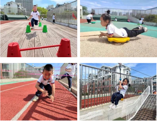 小班老师根据幼儿体能全面发展的需要,利用幼儿园楼顶特有的循环区域,以及各运动器械的合理组合,创设了“‘乐’运动,‘悦’成长”体能大循环运动游戏。多样化的运动游戏,孩子们玩得不亦乐乎,体能得到全面锻炼的同时,更培养了幼儿的良好个性和意志品质,达到身心健康发展的目的。