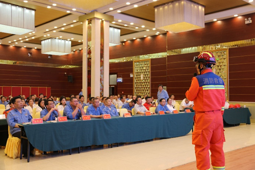 6月12日,潞安化工天脊集团“人人讲安全 个个会应急 畅通生命通道”安全生产专场道德讲堂在天脊宾馆一楼会议室举行。面对天脊集团消防救援大队战训科科长李艳强的提问,与会人员立即观察安全出口位置和安全通道指引标识。紧接着,安全工程师郭建霞给大家讲解了紧急疏散的正确方式和注意事项。随即警铃响起,与会人员进行了一次“畅通生命通道疏散演练”,安全道德讲堂在大家按照疏散路线有序撤离中结束。