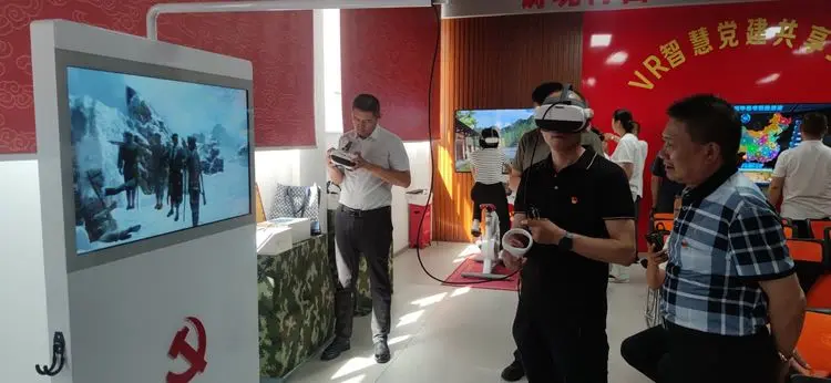 6月20日早上9.45分,迎着清晨第一缕阳光,四个商会党支部的全体党员佩戴党徽、着装整齐、精神抖擞的来到位于乌鲁木齐市北京南路美克大厦的VR党建共享空间,参观体验VR党建智能化设备,亲身感受数字化、智能化给党建工作带来的新动能、新业态。新疆红泽苗苑文化科技有限公司负责策划组织了这次主题党日活动。公司负责人宋泽远在致辞中讲到:东西南北中,工农商学兵,党,是管总的!党的十八大以来,党中央高度重视扩大党的群众基础、提高党的执政能力、巩固党的执政根基,在各社团组织建立两新党组织。各级商会闻令而动、听令而行,迅速建立健全两新组织,坚持党建引领,务实求实落实,始终保持为党经商、为国聚财、为民造福的经商办会宗旨,在新征程上为巩固发展新质生产力做出了积极贡献,焕发出篷勃生机和盎然活力!