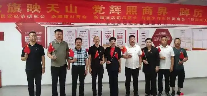 新疆建材商会、兵团民营经济研究会、新疆酒店用品商会、乌鲁木齐市外贸商会四家两新党组织联合开展《党旗映天山、党辉照商界、踔厉勇向前》主题党日活动,四大商会会长、党支部书记和全体会员企业的党员同志全程参与了活动。