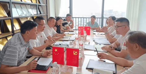 在会上,优靓重工(武汉)有限公司总经理孙汉超致欢迎词;商会党委副书记、秘书长熊爱磊宣读《关于成立优靓重工(武汉)有限公司党支部的通知》及《关于任命孙汉超同志为优靓重工(武汉)有限公司党支部书记的通知》等文件,同时举行了党支部揭牌仪式;商会党委委员、党办主任王宁领誓,与会全体党员重温了入党誓词;党建指导员组织开展党纪学习教育。