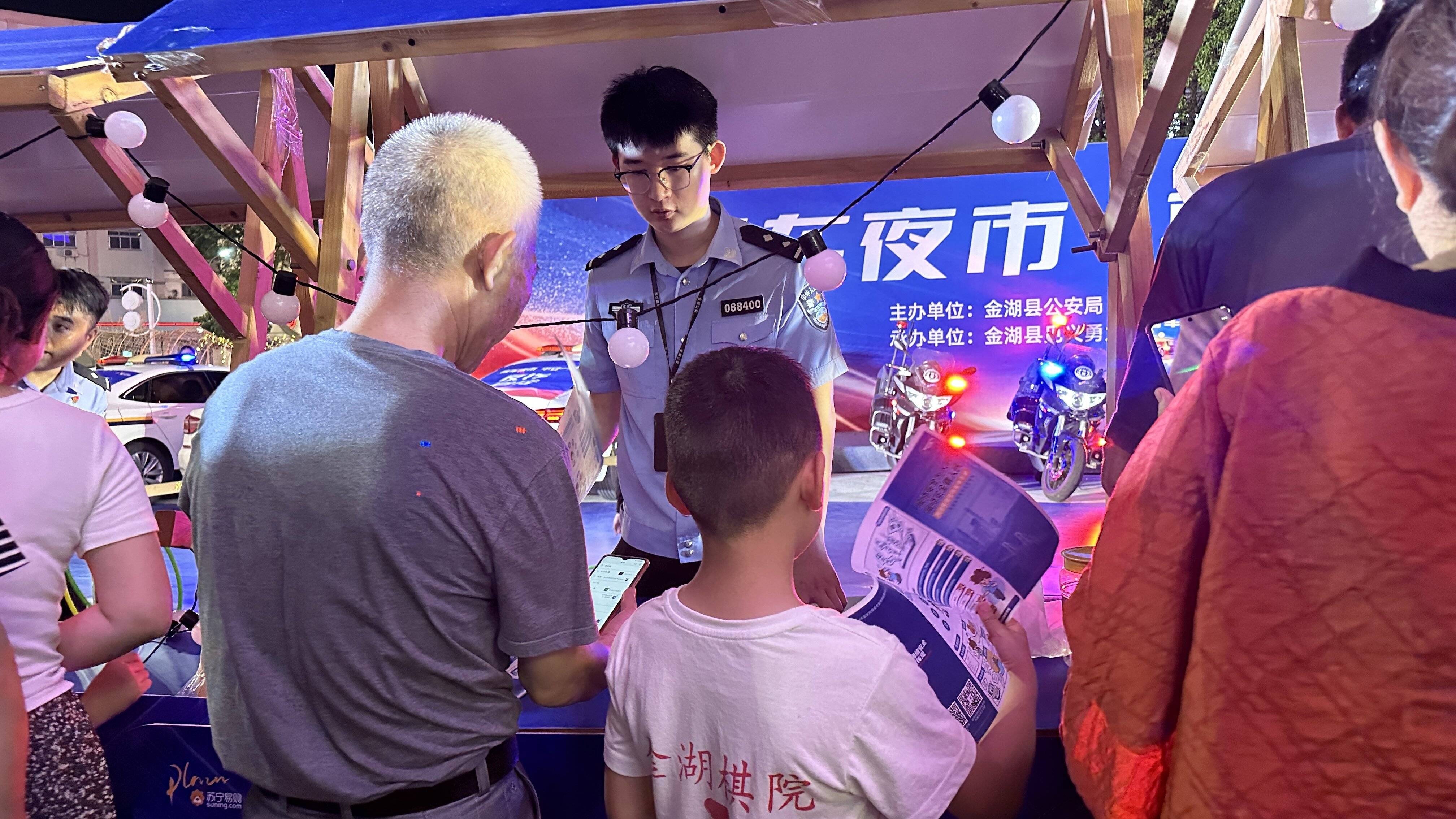 在苏宁密集商圈,民警精心准备了网络安全常识的扫码答题活动,通过扫码答题、宣传折页讲解等方式,向群众普及网络安全防护知识,并赠送奶茶、玩偶等小礼品,教育和引导广大群众重视网络安全的保护。期间共发放网络安全宣传折页500余份,参与网络安全知识问答1000余人次,教育引导群众1000余人。