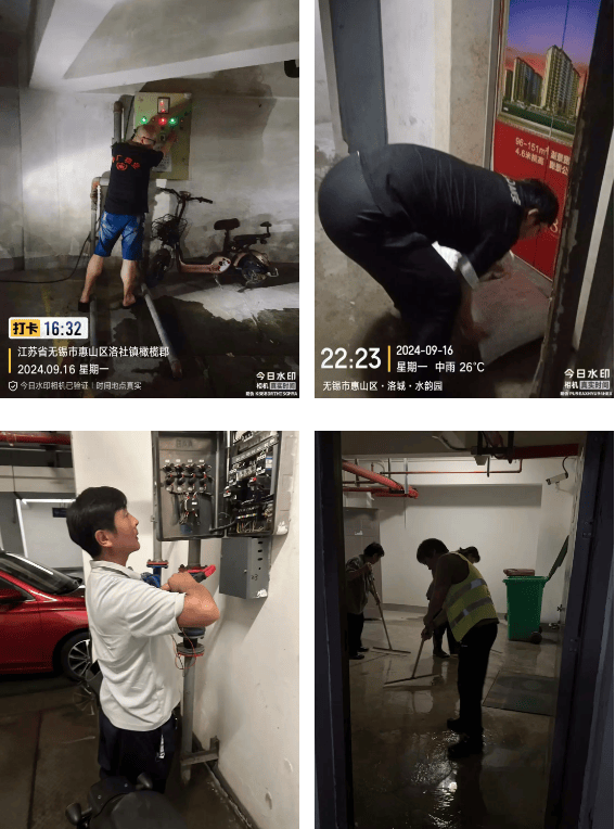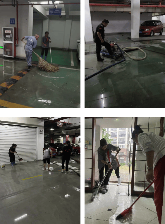 当暴雨倾盆而下,他们不顾自身安危,清理积水,扫除障碍,确保小区的道路畅通无阻。面对水灾的突然袭击,物业人员更是展现出了不屈不挠的精神。他们动用抢险设备,排水、清理倒下的树木和指示牌,疏通下水道,确保了小区的秩序和安全。即便是地下车库也遭受了洪水的侵袭,但物业人员迅速响应,将其清理干净,保障了业主车辆的安全,特别是洛城橄榄园地下人防停车场由于地势低,雨水倒灌,近200余辆汽车将遭到雨水浸泡危险,华广物业全体员工及时组织大家连夜将车开出,立即决定将车停在地面临时道路,避免了业主的私人财产免遭损失,作为物业人员时刻做到想业主之所想,急业主之所急,全心全意为业主服务,用实际行动保护好全体业主生命财产安全。