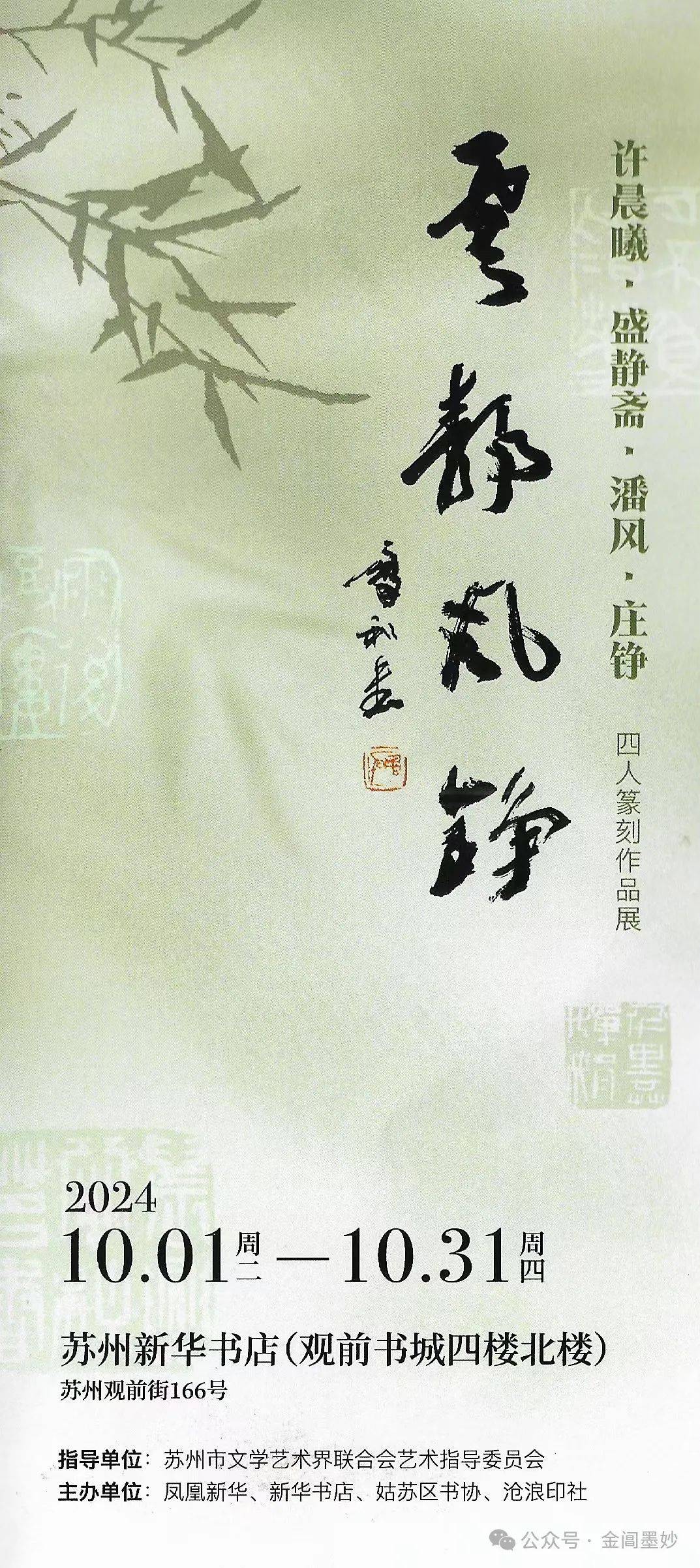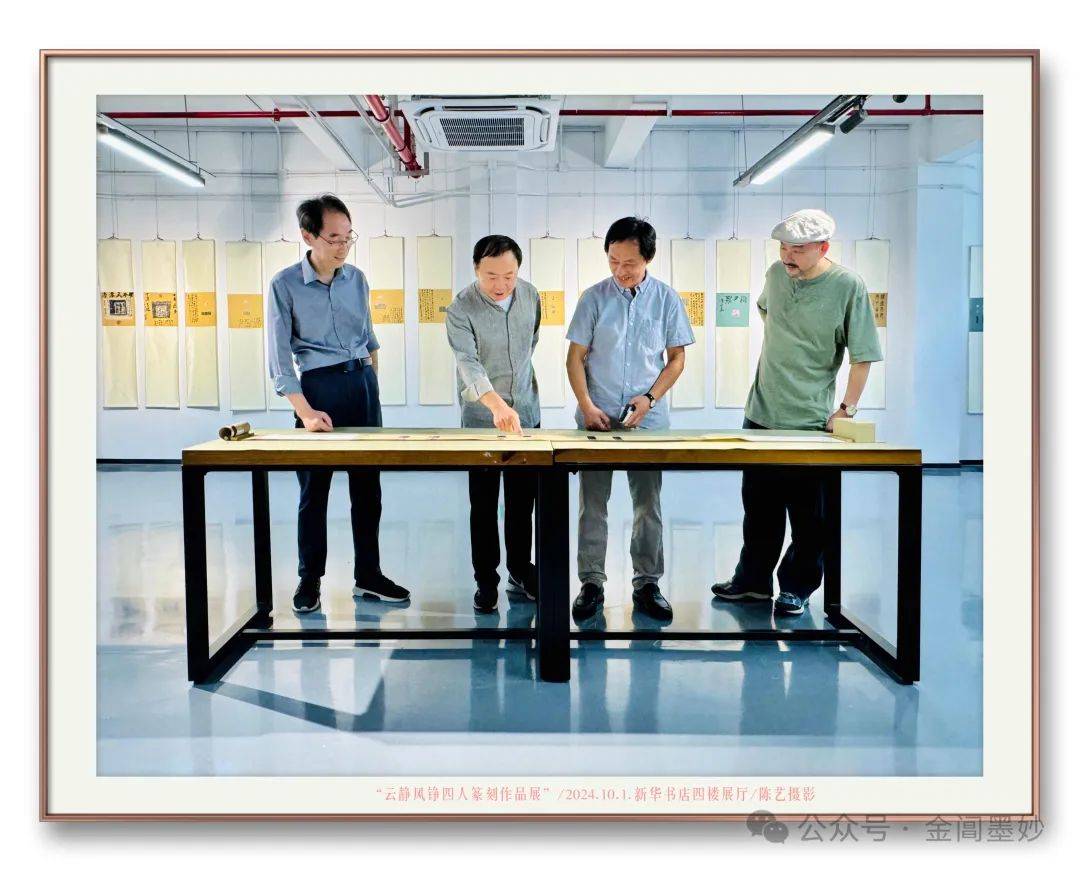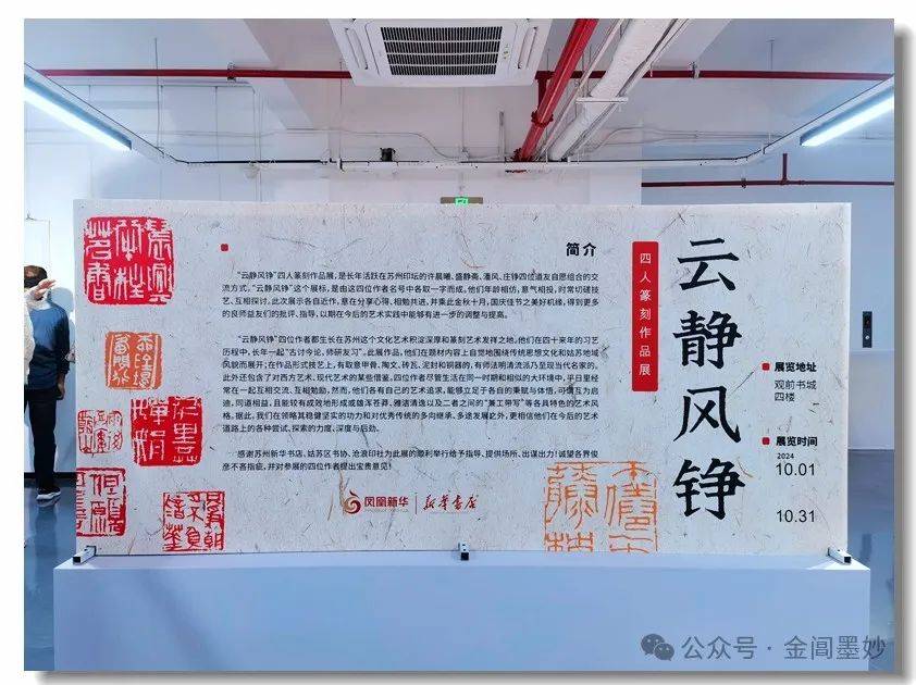 在这举国欢庆的日子,“云静风铮”四人的篆刻展也借观前街新华书店的宝地隆重开幕了。