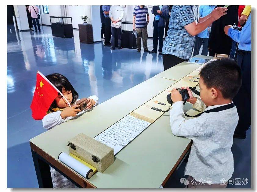 展厅内小娃娃象模象样地在拍摄,篆刻从娃娃抓起,这很明显,没有停留在口头上。