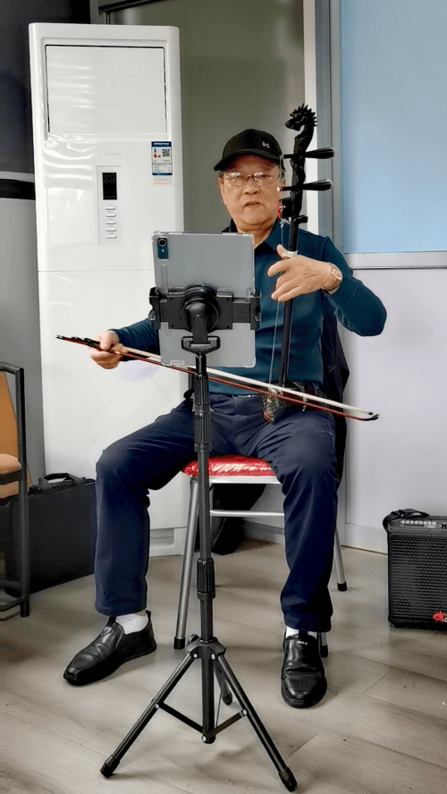 在队长车增瑞的二胡伴奏下,杨淑飞会长亲自上阵,耐心细致地教授姚剧戏迷们学唱《唱支山歌给党听》和《唱得生活更甜美》两首歌曲。这四个小时的学习时间,对于姚剧戏迷们来说,是充实而宝贵的。他们不仅掌握了基本的技能和唱法,更在学习的过程中深刻体会到了姚剧的独特韵味和戏曲之美。