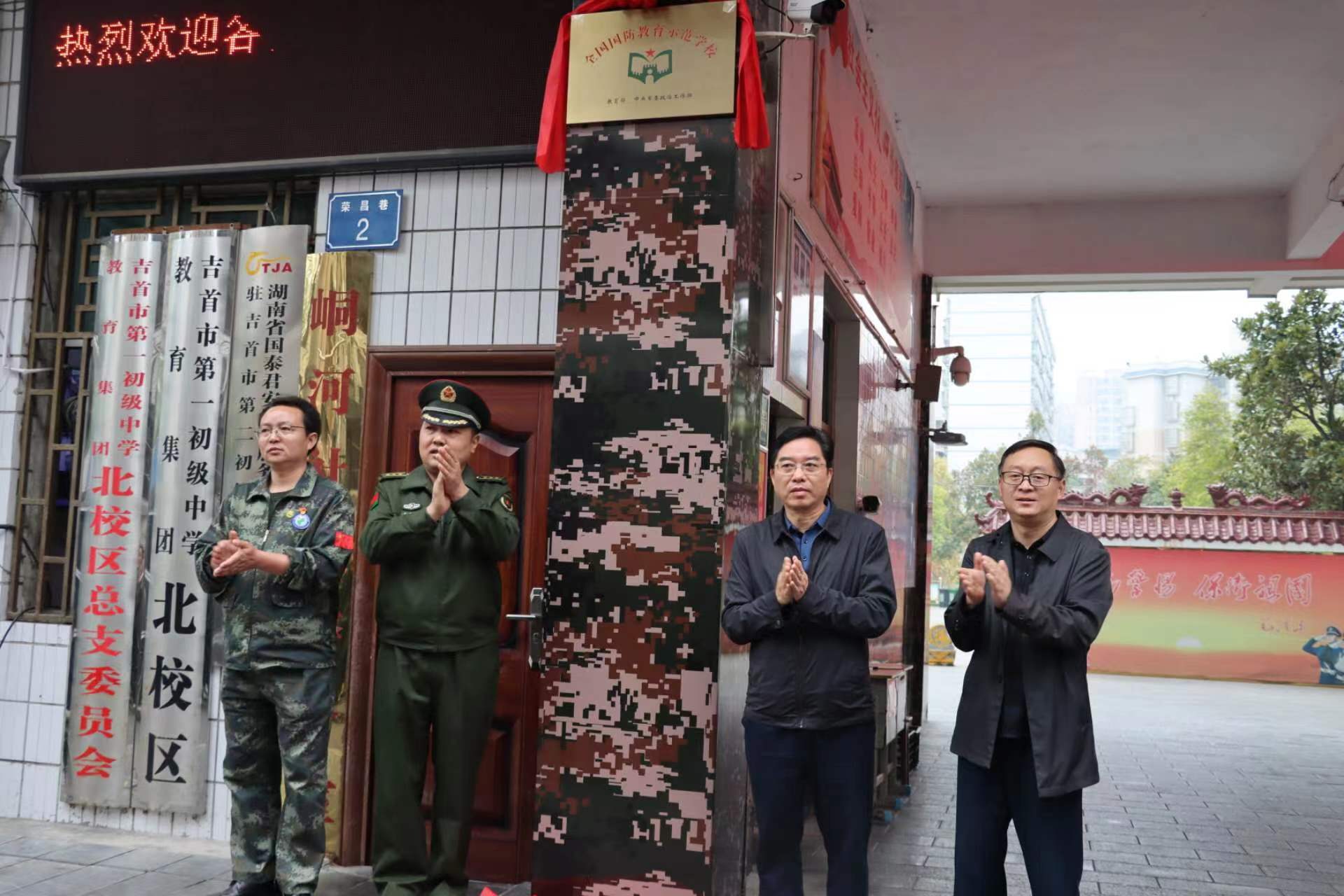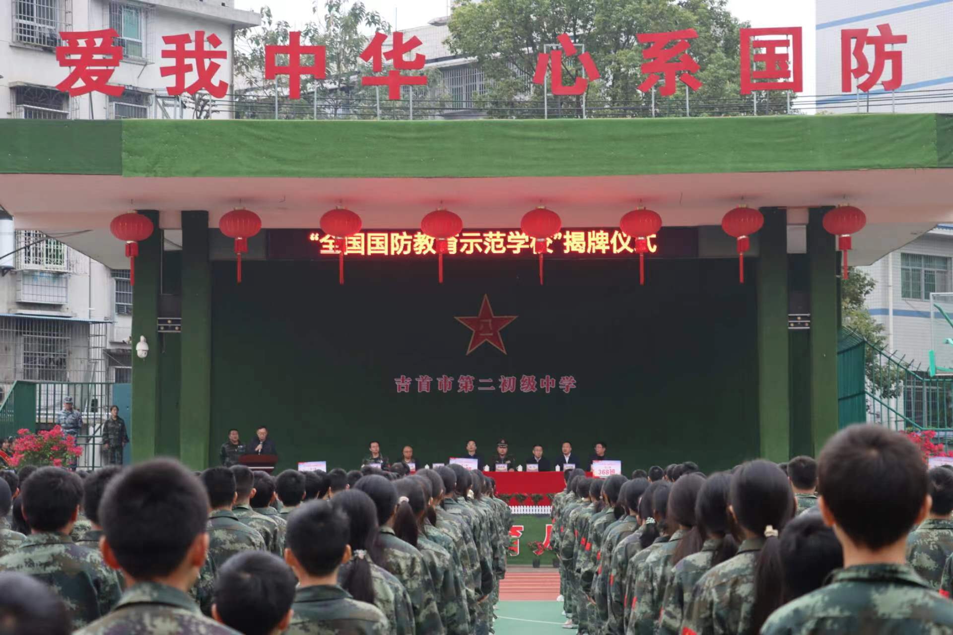 2024年11月15日,吉首市第二初级中学举行“全国国防教育示范学校”揭牌仪式。吉首市委常委、市委宣传部部长谢党,吉首市委常委、市人民武装部部长彭炎林,吉首市教体局党委书记、局长陈凯,峒河街道党工委书记宋明刚等参加。