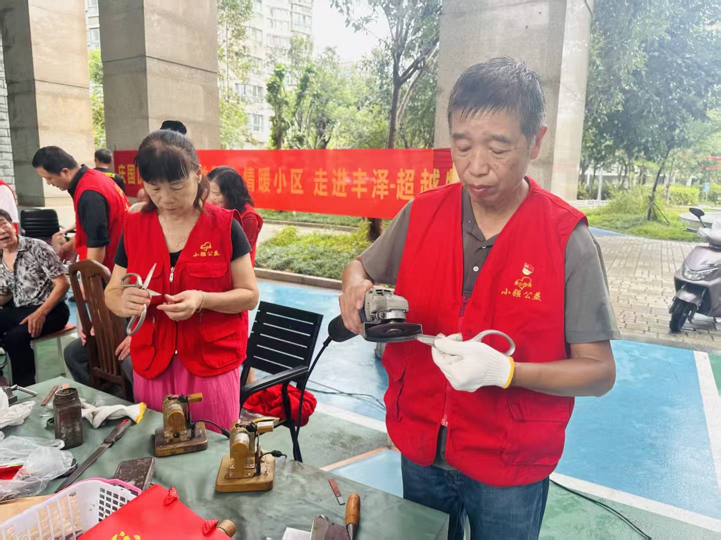 活动刚开始,磨刀匠师傅的摊位前已排起长龙。只见他手持磨石,刀刃在砂轮上翻飞起舞,锈迹斑斑的菜刀转眼寒光凛冽。“这手艺比专卖店的还精细!”捧着焕然一新的刀具,小区里的一位阿姨笑得合不拢嘴,“中秋切月饼、国庆家宴都能大显身手了!”隔壁的义剪区同样火爆,剪刀翻飞间,银发老人们的精神面貌焕然一新,镜中的笑容比月饼更甜。
