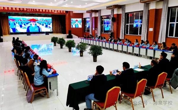 座谈会在温馨而庄重的氛围中拉开帷幕。新教师有序入场,校领导亲切致意并赠送礼品,表达诚挚欢迎。随后,全体与会人员共同观看了海泉学校校园文化宣传片,深入感受学校的办学理念。