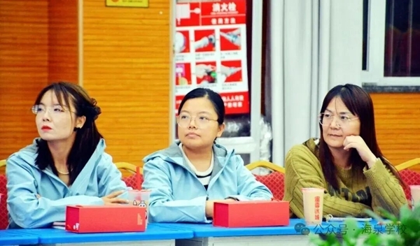 新教师代表畅谈入职以来的感受。他们纷纷表示,将珍惜海泉学校提供的成长平台,主动融入团队,在实践磨砺中成长,在敬业奉献中成就,以实际行动践行教育使命。
