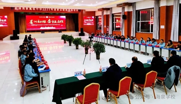 10月13日晚,山西省运城市新绛县海泉学校在实验楼四楼多功能会议厅举行2025年度新加盟教师座谈会。海泉集团副董事长、学校执行董事长王俊胜,校长宋明奇及校委会全体成员与新加盟教师齐聚一堂,共话教育初心,共绘成长蓝图。本次座谈会由副校长苗俊林主持。