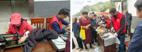 活动现场,余姚市颐和公益服务中心理事长齐国民带领志愿者们各展所长,为村民们提供贴心服务。八大服务专区如花瓣般环绕礼堂广场。家电维修区的"技术能手"们化身"家电医生",为村民的电饭煲、电风扇把脉问诊,边维修边科普安全用电知识;党员志愿者孙文毅的磨刀区前排起长龙,电动砂轮飞转间,120把菜刀重焕锋芒,"这手艺比专卖店还专业!"李大爷的赞叹引得众人会心一笑。今年新增的缝纫服务成为亮点,王文儿的缝纫机哒哒作响,32件待补衣物在巧手中"涅槃重生"。理发区内,刘师傅的剪刀翻飞,为老人们剪出精神焕发的新形象;健康服务区里,党员志愿者展林、盛文桔的推拿手法引得村民连连称道,医护团队则为老人建立血压档案,送上秋日健康贴士。