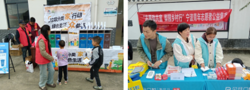 垃圾分类宣传同样引人注目。志愿者们搬来四色分类垃圾桶模型,通过"中药渣归厨余""过期药品属有害"等生活化举例,生动讲解分类要领。现场还发放了印有垃圾分类口诀的环保袋,不少村民当场实践,将活动产生的矿泉水瓶、宣传单页准确投递到对应垃圾桶中。