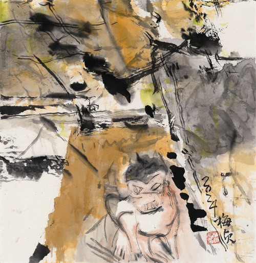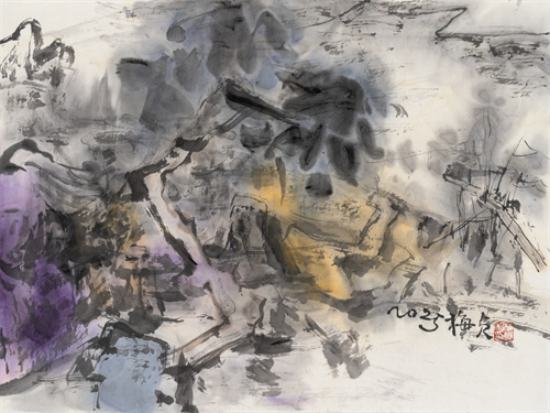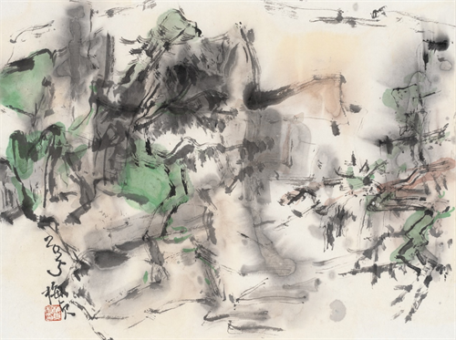陈梅珍的绘画发生了很大的变化。这是她对审美状态的调整与重新认知。显然,她的绘画语言有了强烈的个人面貌。 如何使笔墨散发出精神性,不仅有着独特的艺术形式,并且包含着丰富的艺术精神,恐怕是很多艺术家时常思考着的。在这样的思考中,陈梅珍的绘画图式与手法都有了很多微妙的调整。她越来越借助自然形态,不追求刻画有形的可见物,而是关注下笔时的快慢、紧松、轻重、浓淡、虚实,理性、感性、悟性的交替,从而传达出当下的精神活力。 此时她的心境并不预设,那种自然的写意,是在传统笔墨的流淌中与道相合,只有“唯道集虚”,保持内心的虚空、澄静,摒弃杂念、欲望与主观成见,才能真正保持心底的自由,摆脱了执念,才能与“道”相通,达到超然物外的境界。只有“澄明本心”,艺术才会呈现出高度自由、元气淋漓的语言气息。 所以,技近乎道,最自然的技法就已经是道的显现了。充盈饱满的情绪,饱蘸了水色的毛笔,传统的经典的笔法与当下情绪的融为一体时,才有可能准确地传达出当下的审美。绘画的过程有一种应声落地的感觉,不刻意,独具匠心而了无痕迹。这些貌似粗枝大叶,实则最大限度地保留了绘画中最鲜活的本真的东西。 这样的陈梅珍画得不是简单的形式,而是精神的厚重与开阔。 绘画是一个求“真”的过程,真是每一个当下,每一个用笔的起行收,每一次的呼与吸。 “真”包含了事物内在的生命与本质。好的作品神完气足,有一种抑制不住的生命力。是平中见奇的本乎自然、不假修饰的美。陈梅珍绘画并没有具体的形,而是每一个笔道、每一块色墨、每一个提按、每一个入纸都在显示她突破形役、突破物役的坚决,从而挖掘她内在的本性与真情。 此刻,她的江南的苏州的地域,其实才是她真正别于他人的底气,那种对水的把握,超乎他人,大胆,天然,似乎生长在水乡、太湖的人,天生就有驾驭水的能力,不只是地上的江河,更是纸上的江湖。 可能,她自己也不会想到,到底,她笔中的水的应用,映衬出一片鲜活、沉实、质朴的天地,她画中的水,使得她集虚灵,精微而广大,那种充满力量的色墨的对比,枯湿的灵动,吴地人的细腻而充满了张力的想象全部彰显,所有的画面都是画家精神的外化。应该说,陈梅珍本然的生命慢慢地达到了一个浑忘的佳境,本来,绘画就是找到那个真实的自我。那种画面的纯粹单纯的力量越发突显。 散淡的、无所求、自然的、真实的“我”在陈梅珍的绘画里慢慢成长,该开花就开花,该结果就结果。不用刻意地维护,放掉不必要的细节和语言,那种精神的自由让它天马行空,很多时候,不是画的节奏,是心的节奏。 祝贺梅珍,自由行走!