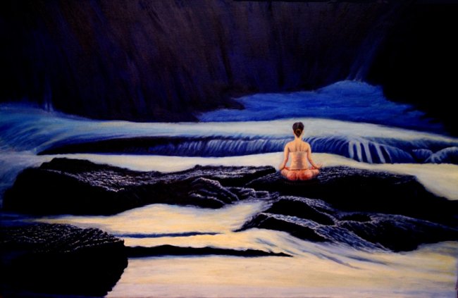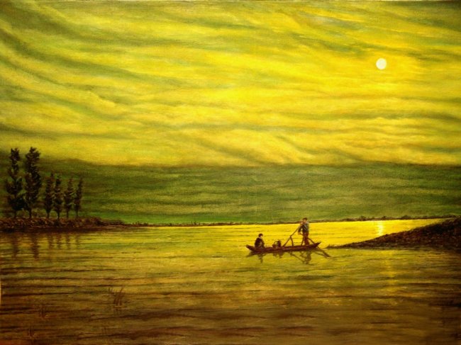 夜之韵,60cm×90cm,2009年3月,一片清江水,中涵万古情。