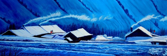 冬之韵, 40cm×120cm,2009年1月,正月晴和风景新,山村淹留乐游人。