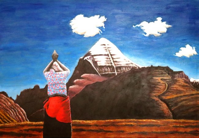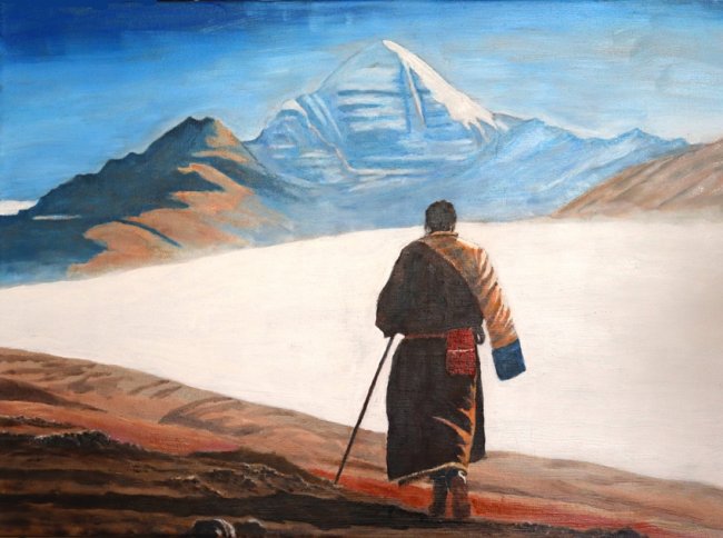 膜拜,50cm×70cm,2025年11月,岗仁波齐圣洁壮美,众生共情顶礼膜拜。