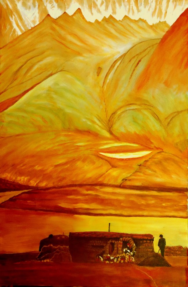 帕米尔小调,60cm×90cm,2023年3月,高山雪原帕米尔,岭上骄鹰塔吉克。