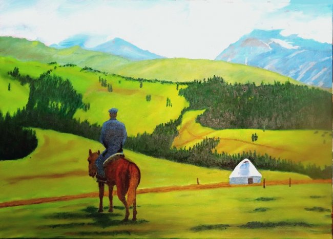 怅廖阔,50cm×70cm,2024年11月,比草原更辽阔的,是人的心灵。