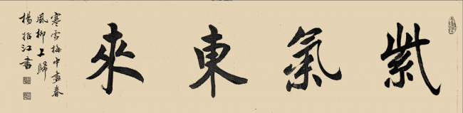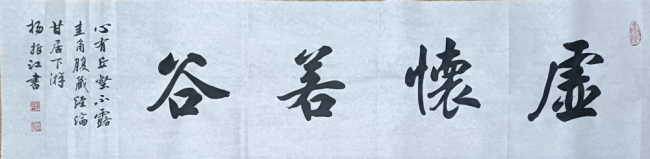 杨哲江幼承庭训,随父学书。先临欧、颜、柳,又学赵、米、王,并得到著名书法家欧阳中石,旭宇、邹德忠、卢中南等前辈的指教。中石先生对其作品的评价是:作品很美,布局严谨,笔法流畅,书卷气很浓,欣赏其作品有种美的享受。建议要在不失传统的情况下注重创新,并坚持发扬自己的风格。多年来他坚持自学不辍,工作之余游名山大川,古都重镇,所到之处,拜读碑林木刻,牌匾铺名,学名家笔法,集大家所长,融会贯通,形成用笔流畅,点画遒劲,字形优美,结构严谨的风格。观其作,可见欧书的底色,颜柳的质感,赵文敏的风神,二王行书的节奏,可谓中和恬适取法丰富。其长于行楷,笔酣墨饱,骨健韵和,舒朗秀逸,静雅厚重,偶出飞白而少见枯笔。其榜书作品中锋行笔,含蓄蕴藉,线质朴拙,浓淡有度,圆润典雅,内涵丰富,书卷气十足。很多作品中别具一的“跋”诠释了其读书体会、人生感悟,承载了其个人文化学养、审美观念和生命体验,他的题跋不仅仅是寄兴,亦是治学,更是其对文化的理解和传承,且赋予了对原作的新的生命,读来使人感觉华质相伴,亲和舒畅,赏心悦目。作品曾多次荣获全国书法大展赛不同奖项,被多家报刊杂志及网站所刊载。近百幅作品被分别收入大型专业书刊。